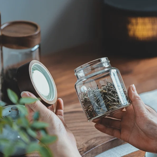 - Wooden lids with silicone sealing rings for airtight freshness